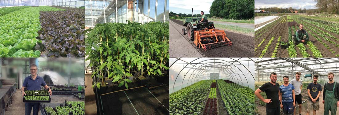 Zunächst wurde auf etwa 1000 qm Mischkulturenanbau betrieben. Mittlerweile bearbeiten wir ca. 3 ha Freilandfläche, wobei Anfang 1998 eine Glasgewächshaus-Fläche von 1000 qm hinzugekommen ist. Im Jahr 2002 erweiterten wir das Glasgewächshaus um weitere 1000 qm. Drei kleinere Foliengewächshäuser mit je 120 qm Fläche stehen noch zur Ergänzung des Angebotes zur Verfügung.